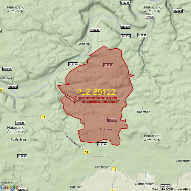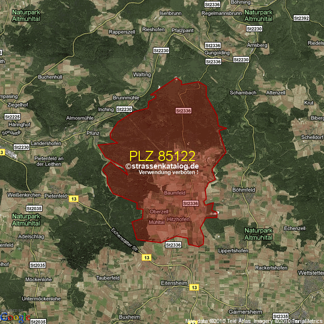 Straßenverzeichnis zur Postleitzahl 85122