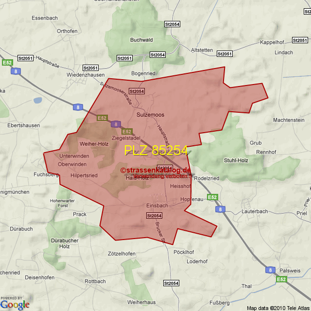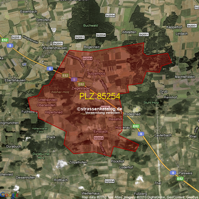 Straßenverzeichnis zur Postleitzahl 85254