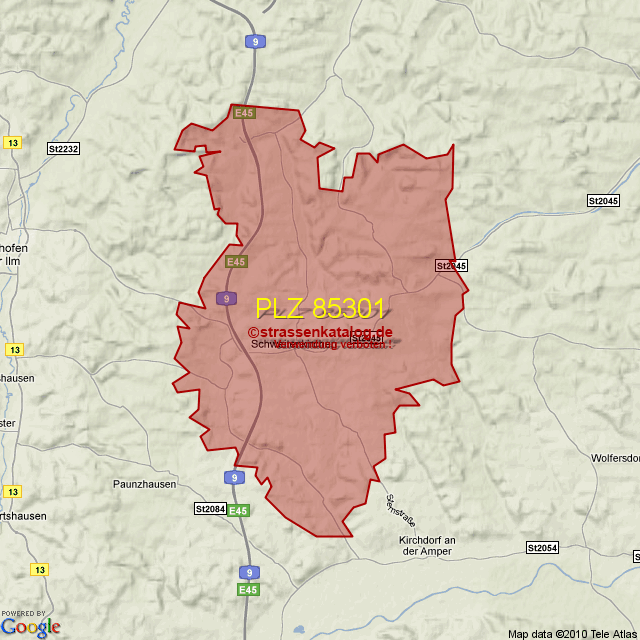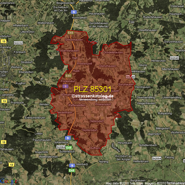 Ortsteile von Schweitenkirchen mit der PLZ 85301