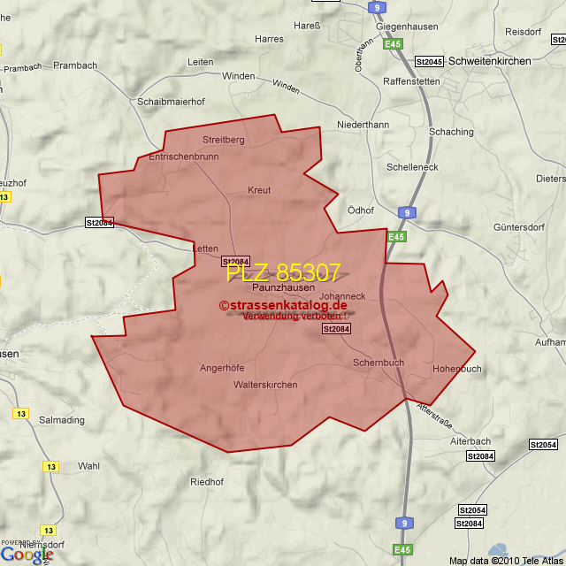 Straßenverzeichnis zur Postleitzahl 85307