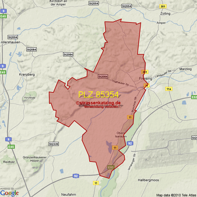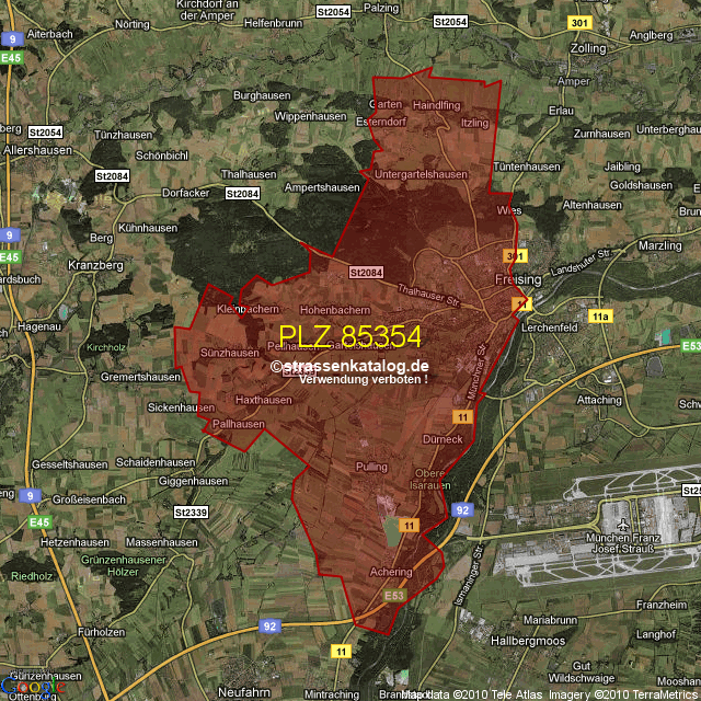 Straßenverzeichnis zur Postleitzahl 85354
