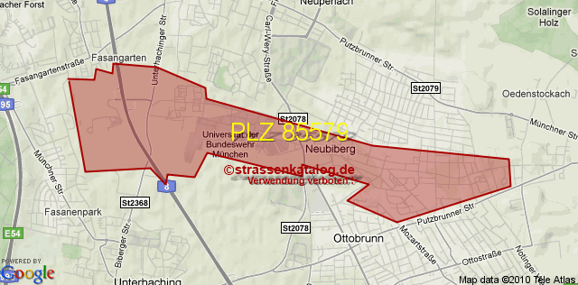 Straßenverzeichnis zur Postleitzahl 85579
