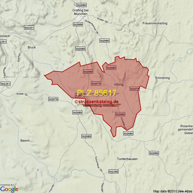 Straßenverzeichnis zur Postleitzahl 85617