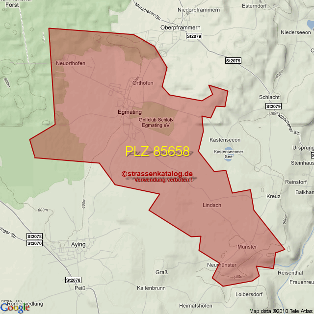 Straßenverzeichnis zur Postleitzahl 85658
