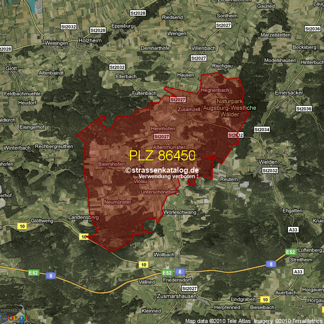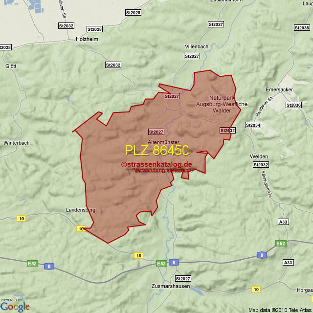 Straßenverzeichnis zur Postleitzahl 86450