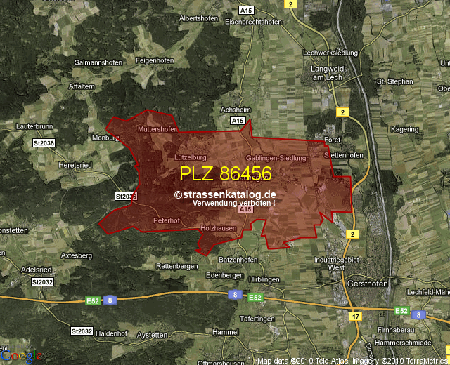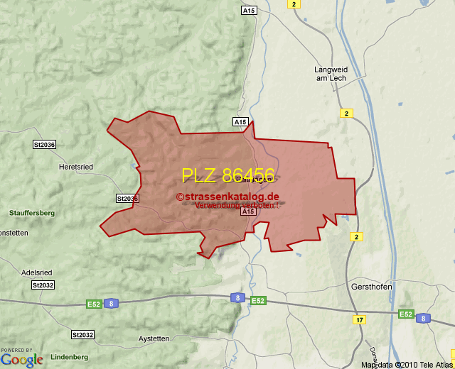 Straßenverzeichnis zur Postleitzahl 86456