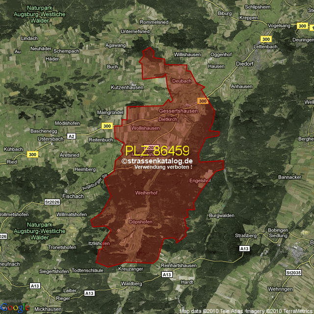 Ortsteile von Gessertshausen mit der PLZ 86459