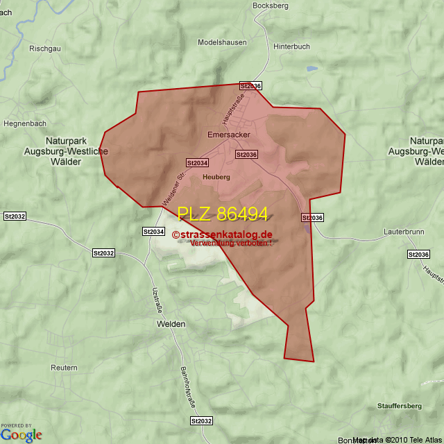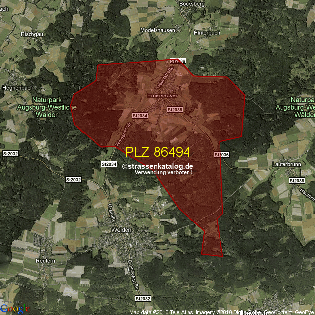 Straßenverzeichnis zur Postleitzahl 86494