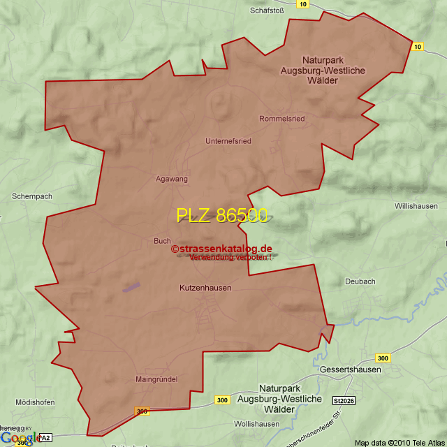 Ortsteile von Kutzenhausen mit der PLZ 86500