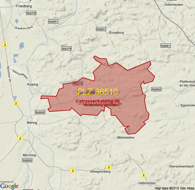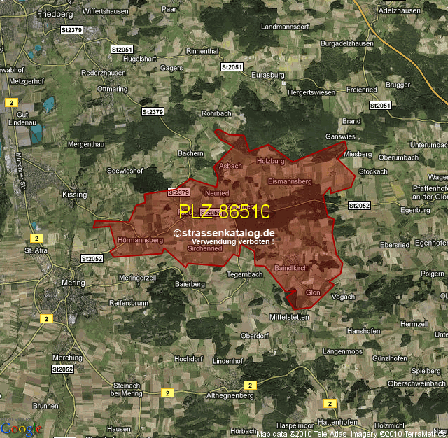Straßenverzeichnis zur Postleitzahl 86510