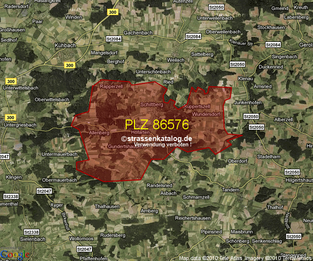 Straßenverzeichnis zur Postleitzahl 86576