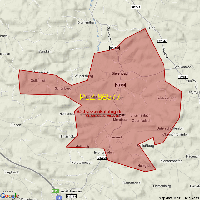Straßenverzeichnis zur Postleitzahl 86577