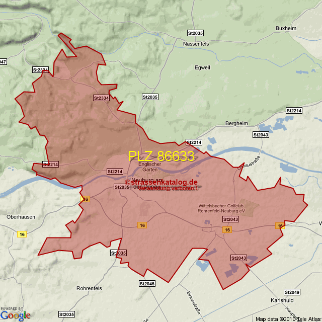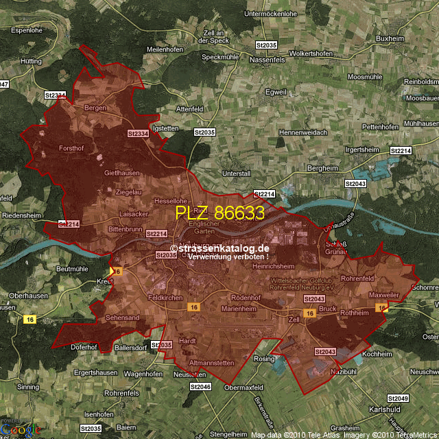 Straßenverzeichnis zur Postleitzahl 86633