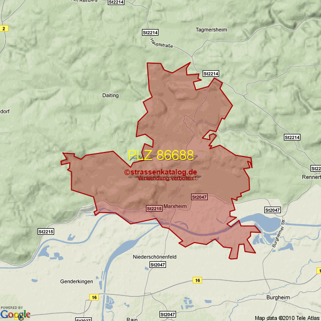 Straßenverzeichnis zur Postleitzahl 86688