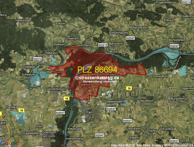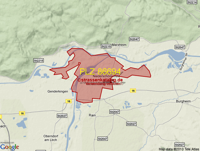 Straßenverzeichnis zur Postleitzahl 86694