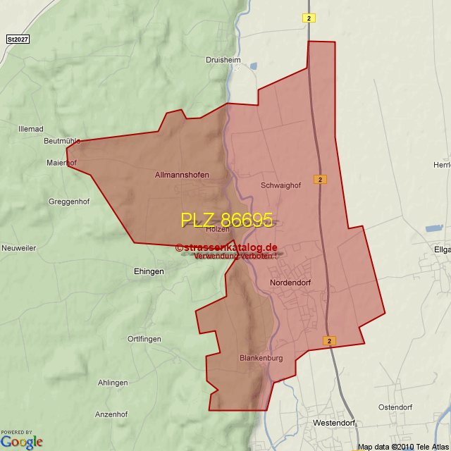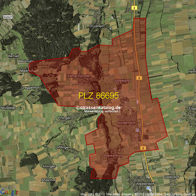 Ortsteile von Allmannshofen mit der PLZ 86695