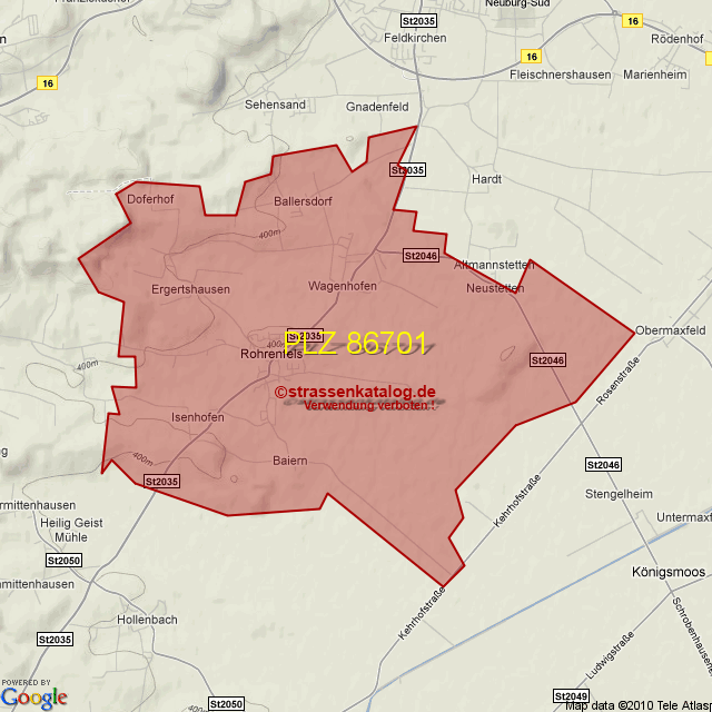 Straßenverzeichnis zur Postleitzahl 86701