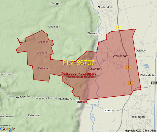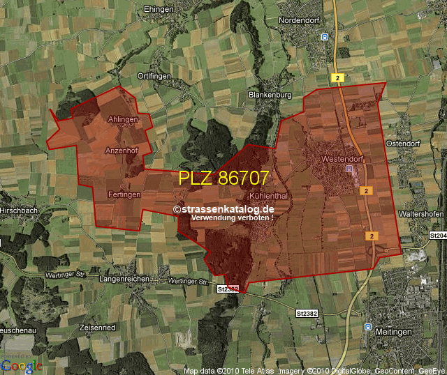 Ortsteile von Kühlenthal mit der PLZ 86707
