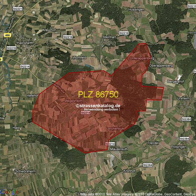 Postleitzahlgebiet (PLZ) 86750