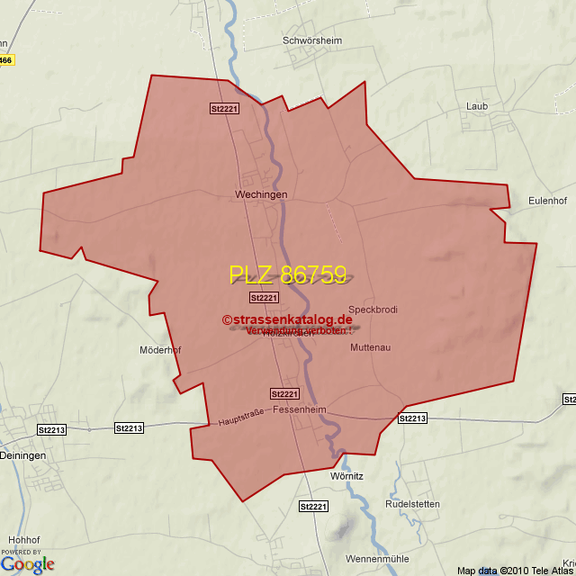 Straßenverzeichnis zur Postleitzahl 86759