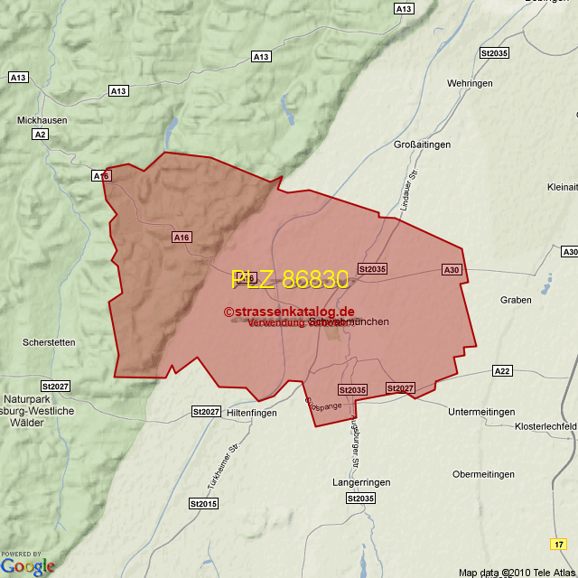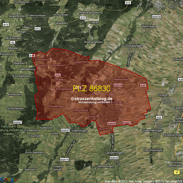 Ortsteile von Schwabmünchen mit der PLZ 86830