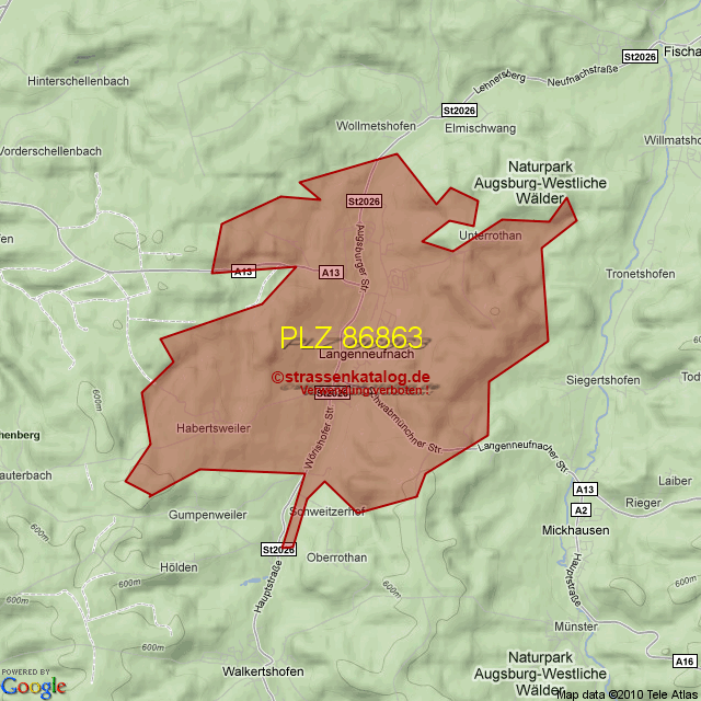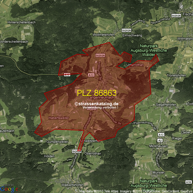 Ortsteile von Langenneufnach mit der PLZ 86863