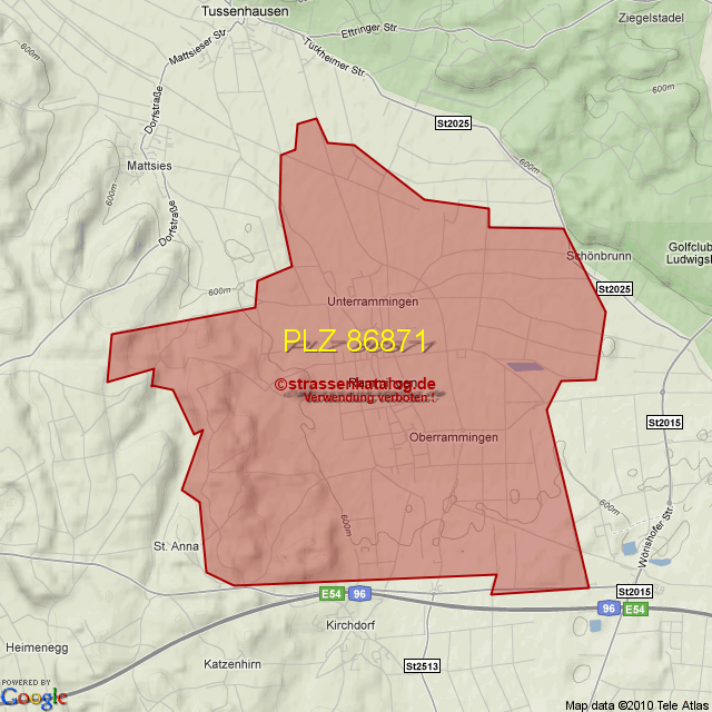 Straßenverzeichnis zur Postleitzahl 86871