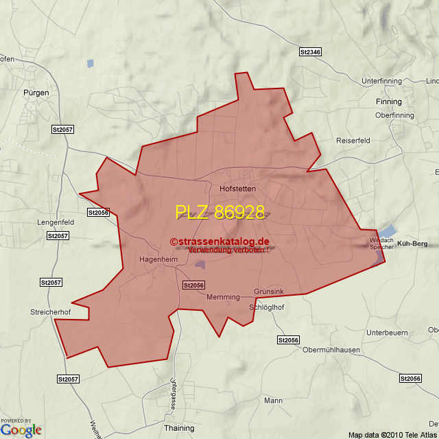 Postleitzahlgebiet (PLZ) 86928