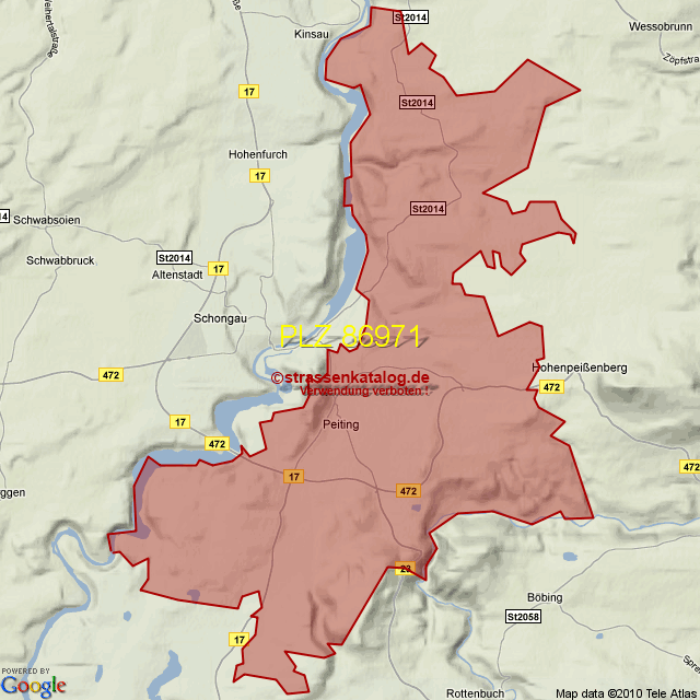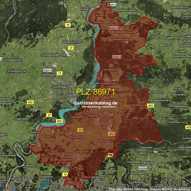 Ortsteile von Peiting mit der PLZ 86971