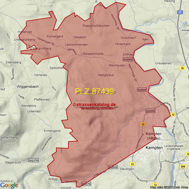 Ortsteile von Kempten mit der PLZ 87439