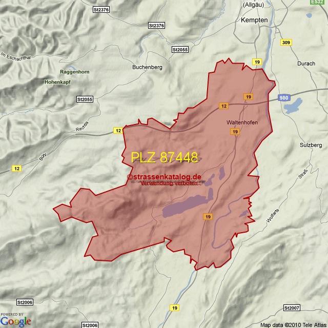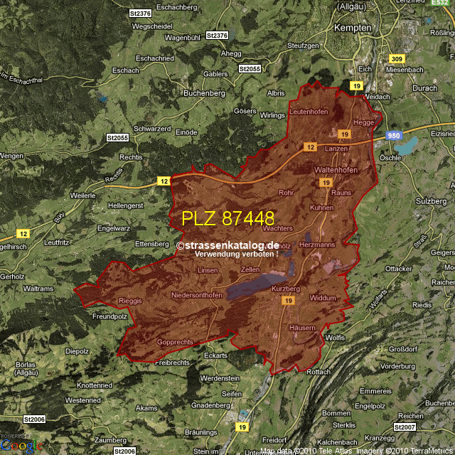 Ortsteile von Waltenhofen mit der PLZ 87448