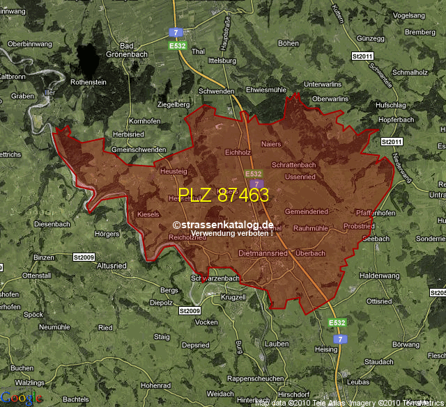 Ortsteile von Dietmannsried mit der PLZ 87463