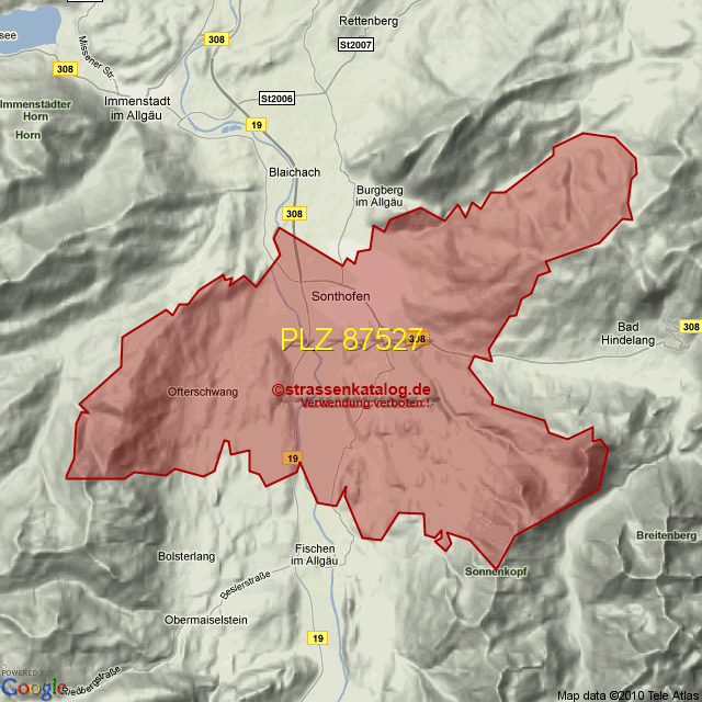 Ortsteile von Ofterschwang mit der PLZ 87527