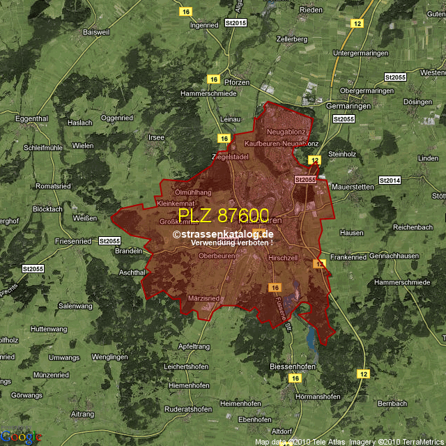 Ortsteile von Kaufbeuren mit der PLZ 87600