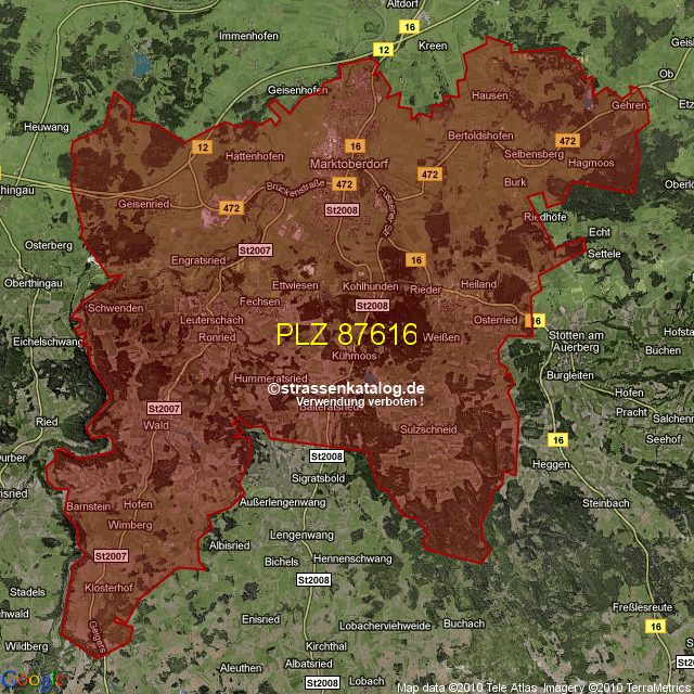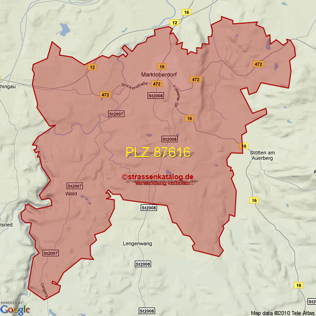 Straßenverzeichnis zur Postleitzahl 87616