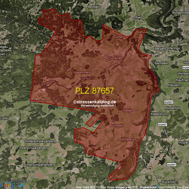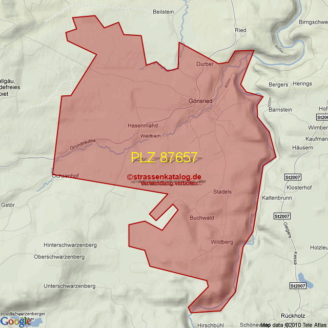 Postleitzahlgebiet (PLZ) 87657