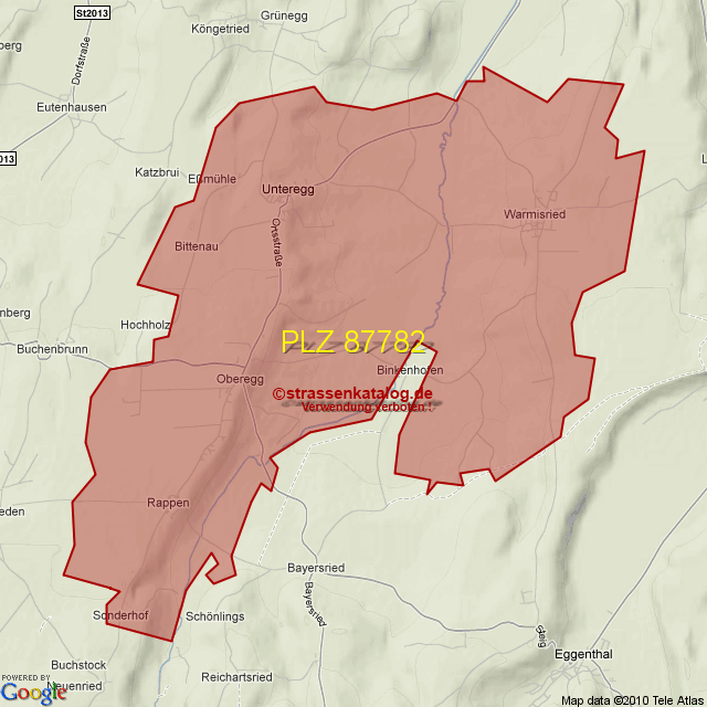 Straßenverzeichnis zur Postleitzahl 87782