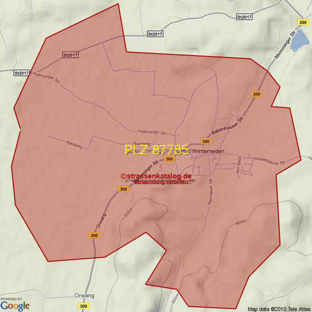 Straßenverzeichnis zur Postleitzahl 87785