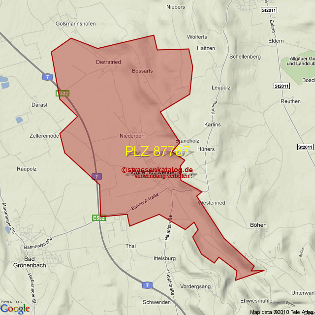 Postleitzahlgebiet (PLZ) 87787