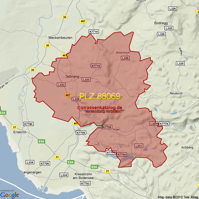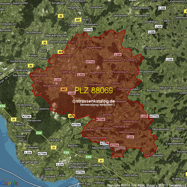 Postleitzahlgebiet (PLZ) 88069