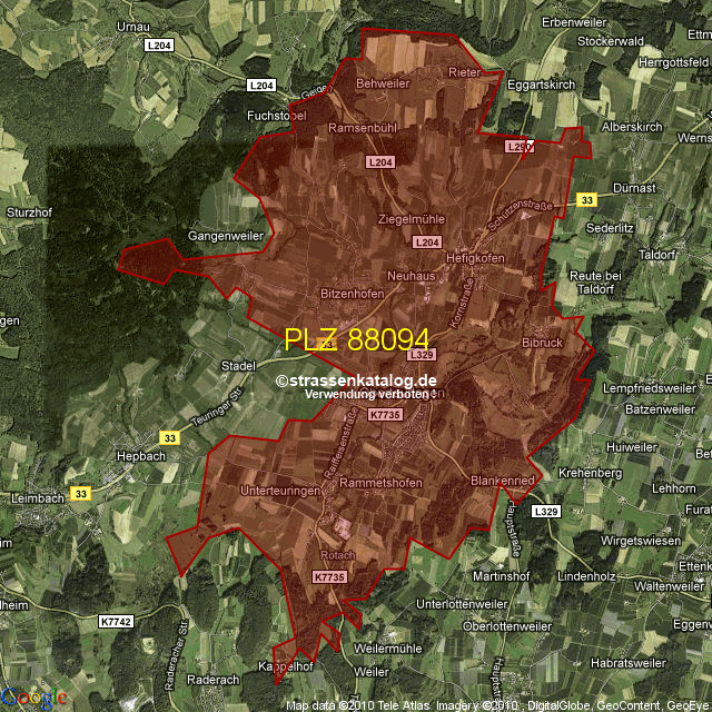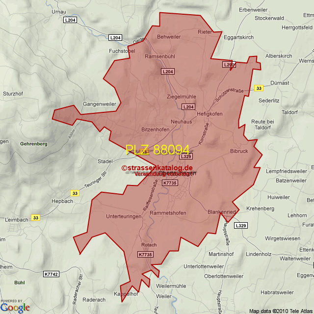 Ortsteile von Oberteuringen mit der PLZ 88094