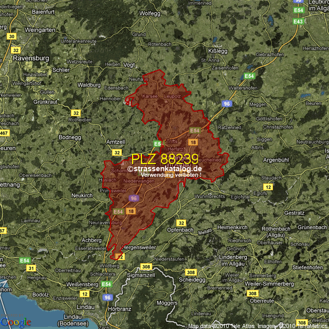 Postleitzahlgebiet (PLZ) 88239
