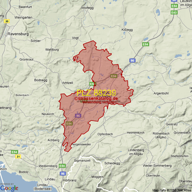 Straßenverzeichnis zur Postleitzahl 88239