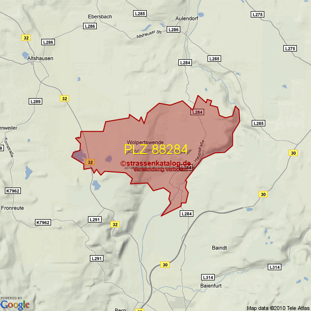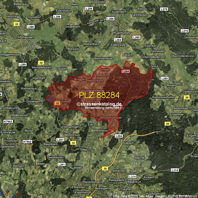 Straßenverzeichnis zur Postleitzahl 88284