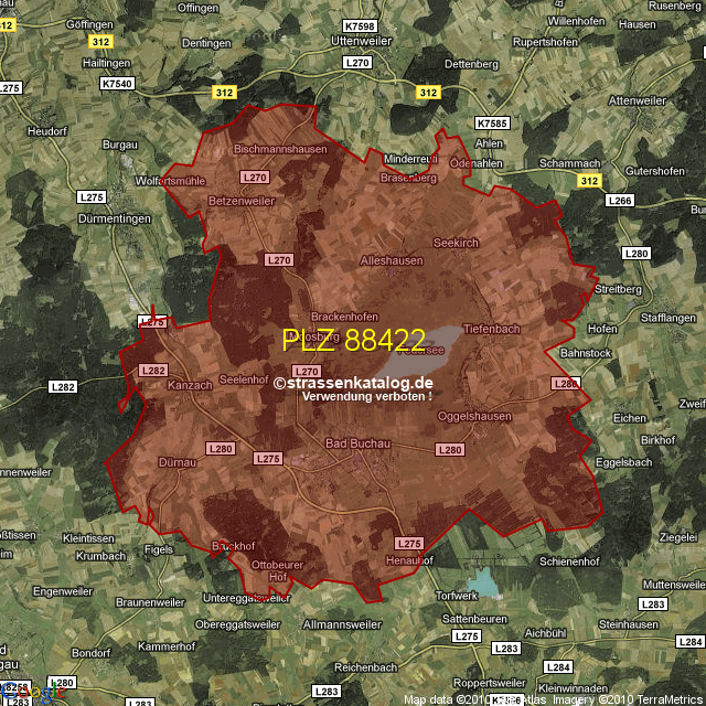 Ortsteile von Betzenweiler mit der PLZ 88422
