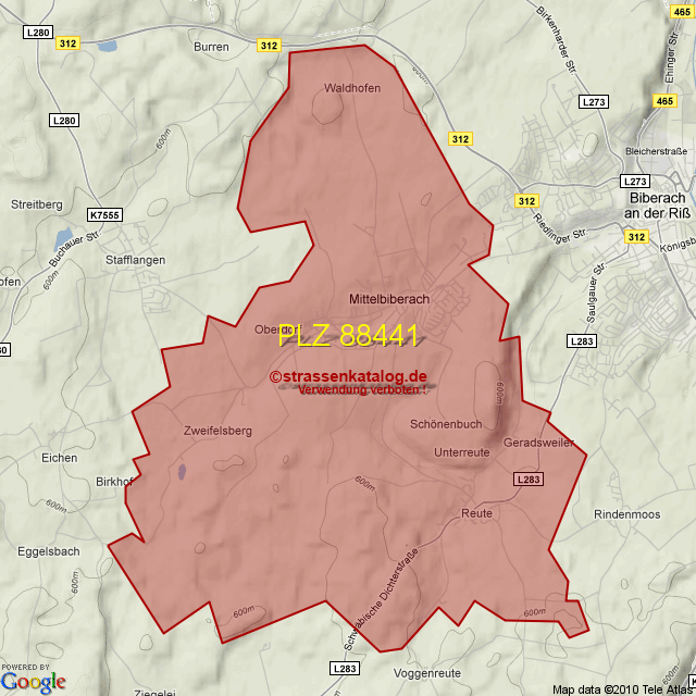Ortsteile von Mittelbiberach mit der PLZ 88441