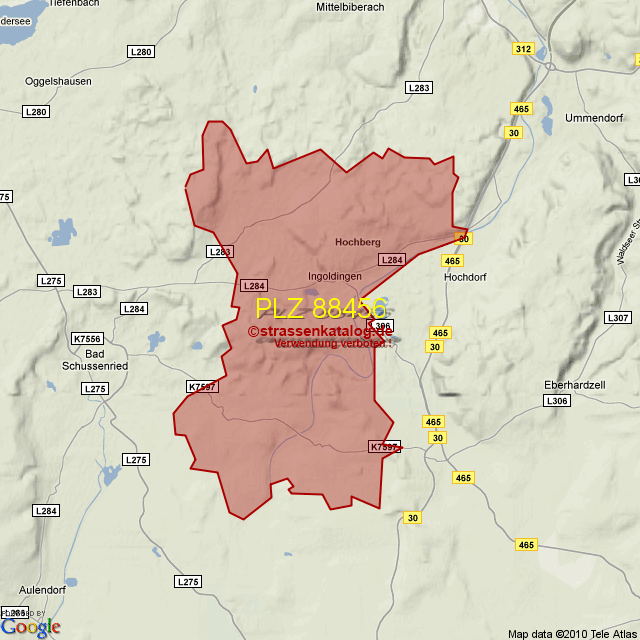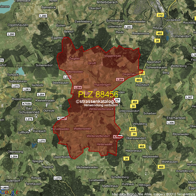 Ortsteile von Ingoldingen mit der PLZ 88456