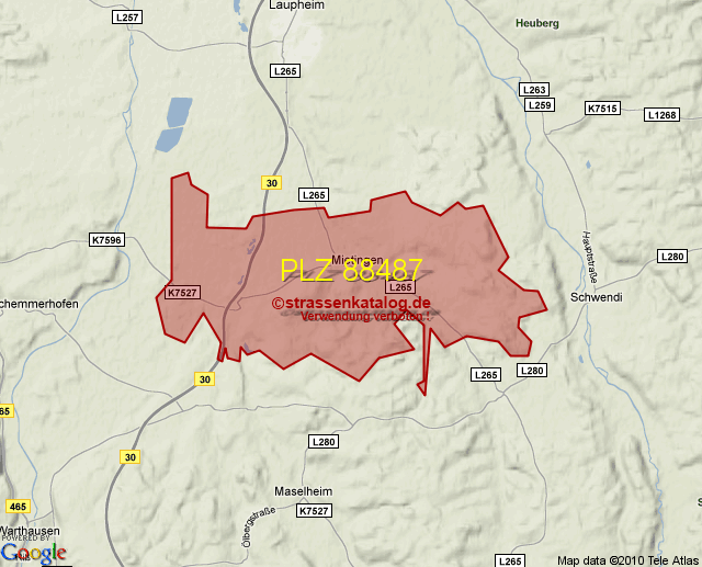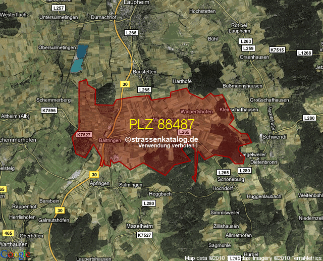 Straßenverzeichnis zur Postleitzahl 88487