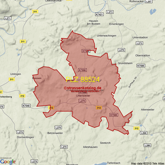 Postleitzahlgebiet (PLZ) 88524
