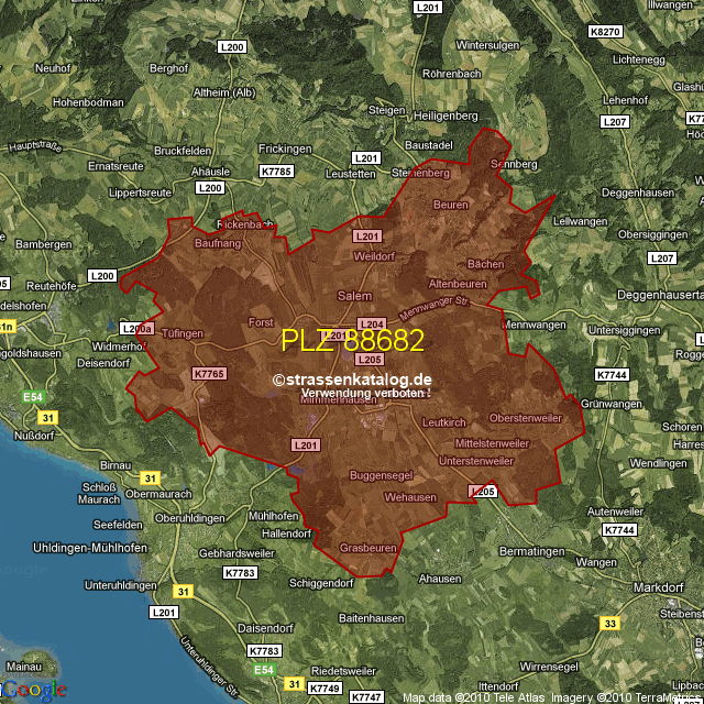 Zu der Postleitzahl 88682 wurden 1 Orte und 14 Ortsteile gefunden.